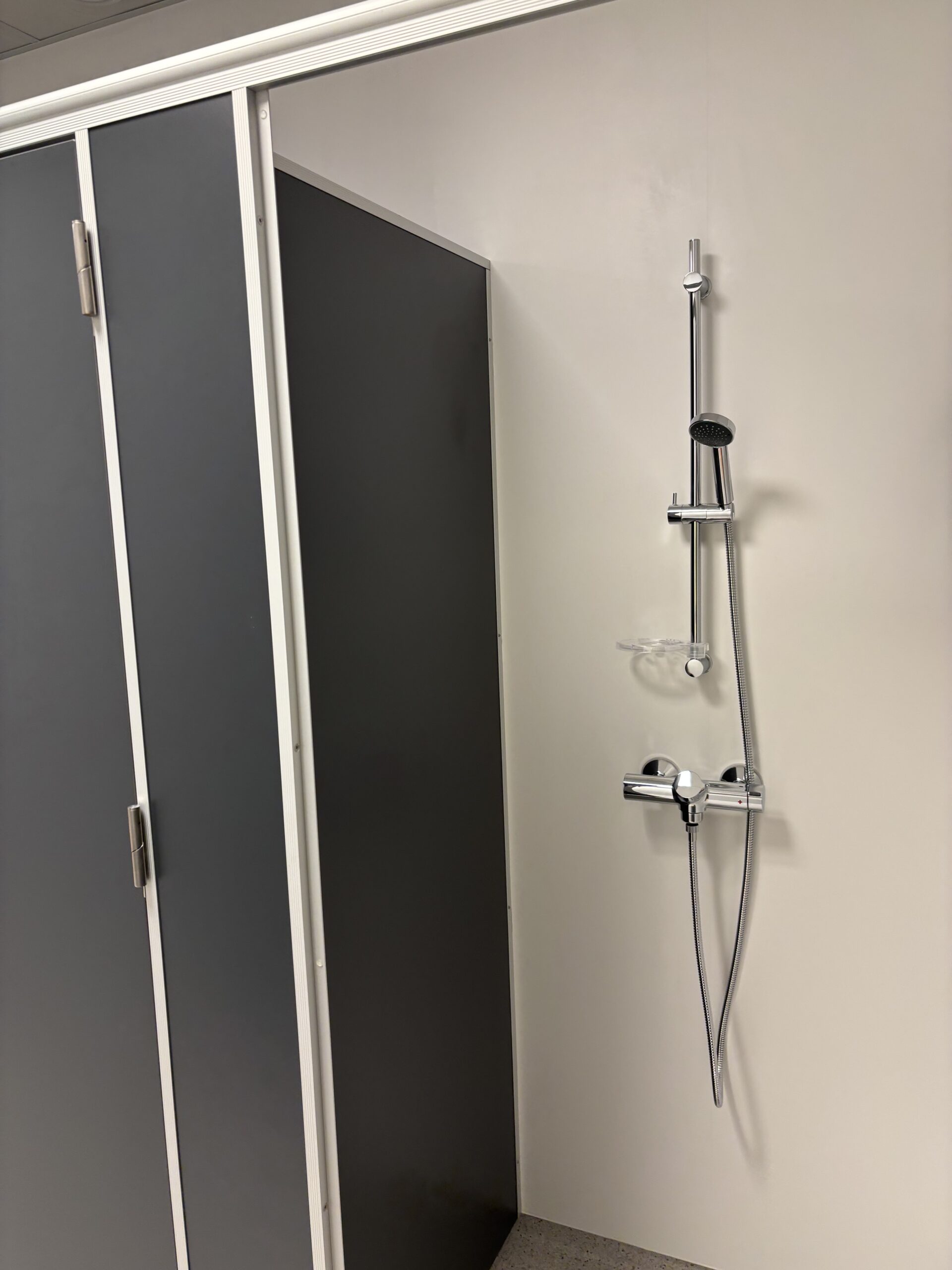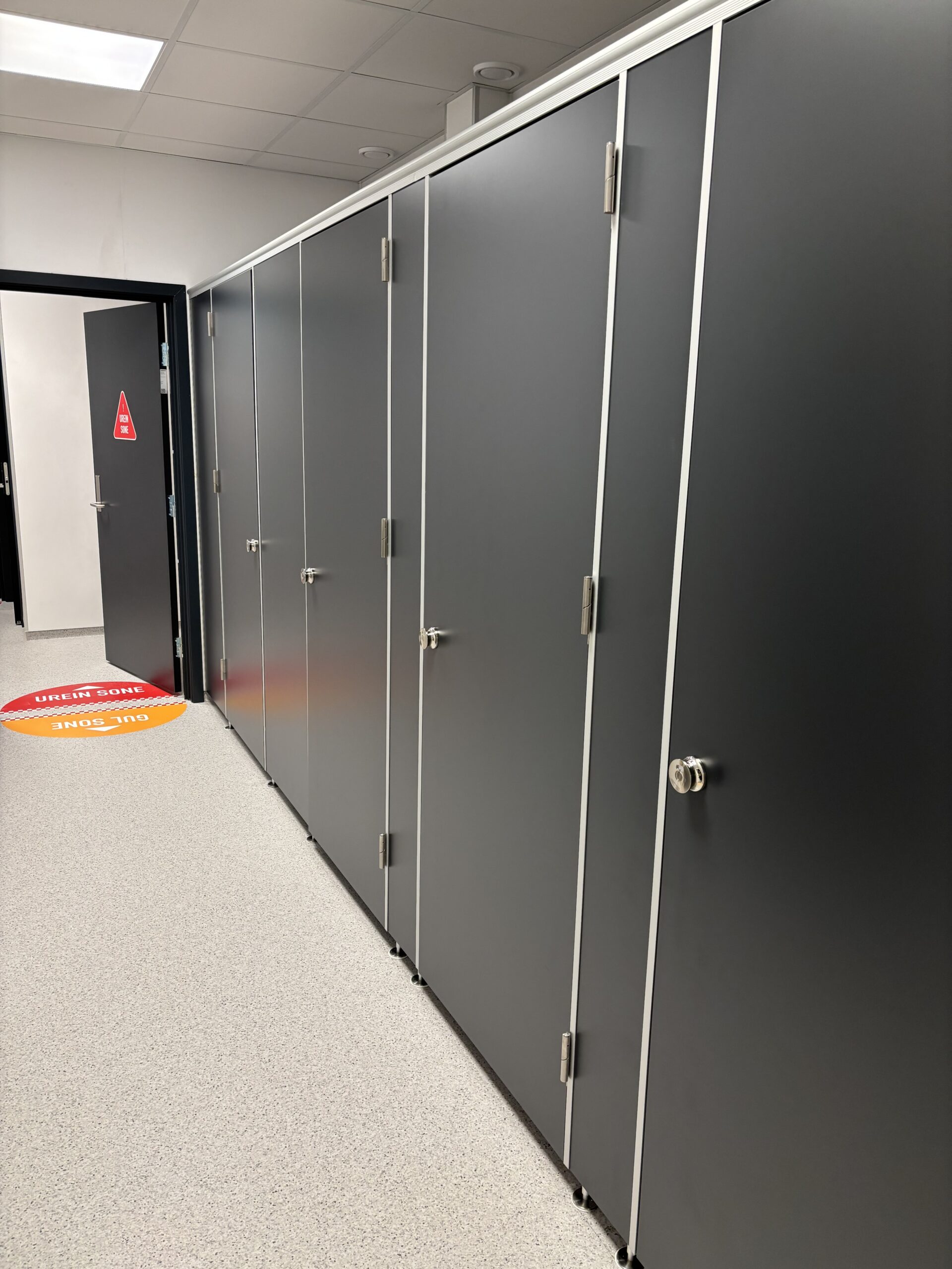 Spanske vægge | ATLANTIC ONE spanske vægge produceres af 13 mm kompaktlaminat. Kompaktlaminat er et særdeles stærkt produkt både på overfladen og i kernen, som lever op til meget høje krav i forhold til vand, hygiejne, holdbarhed og rengøring selv ved et minimum af vedligeholdelse. Derudover giver kompaktlaminatets enkle overflade og rene kerne et meget elegant og stilrent udtryk. ATLANTIC ONE spanske vægge af kompaktlaminat leveres med et flot og enkelt profilsystem i naturanodiseret aluminium. Selvlukkende hængsler, greb, skruer mm., leveres i rustfast stål og aluminium.